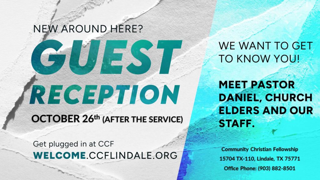 You are invited! Calling those who want to discover more about CCF to join us for 15-20 Minutes in the Fellowship Hall after Service. A warm welcome awaits you, along with finger foods and a chance to get to know each other better.CCF Lindale
