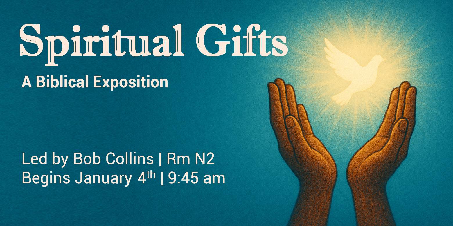 Spiritual Gifts A Biblical ExpositionLed by Bob Collins | Rm N2 There is a lot of confusion, even controversy, in the Body of Christ today regarding the spiritual gifts given through the Holy Spirit. In this class we will define what a spiritual gift is starting with the incredible relationship between grace and gifts from the Father. Then we will go through all the scriptures in the New Testament that tell us about the different types of gifts, where they come from, what is the purpose of these gifts and how to use them. This class will give you a …